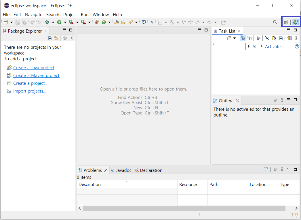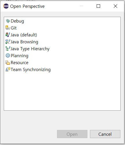 ② Window - Perspective - Open Perspective - other...에서 변경 가능.