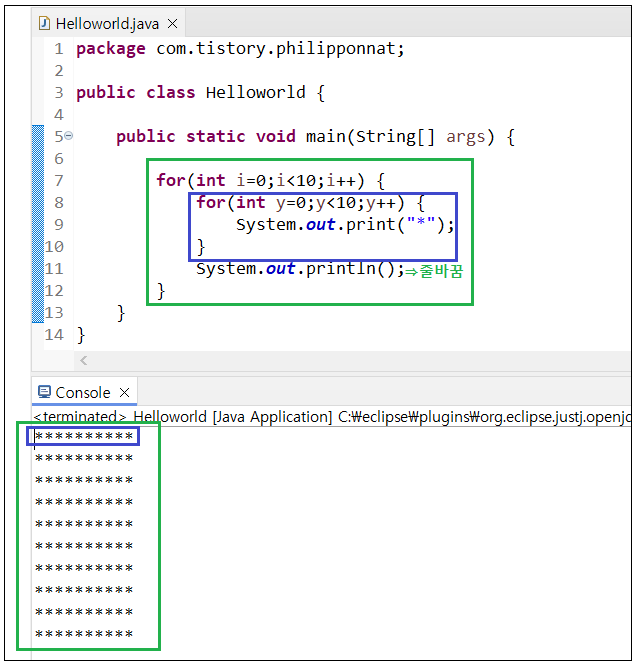 for문 안에 또 다른 for문을 포함시키는 것. 중첩 횟수는 제한 없음.