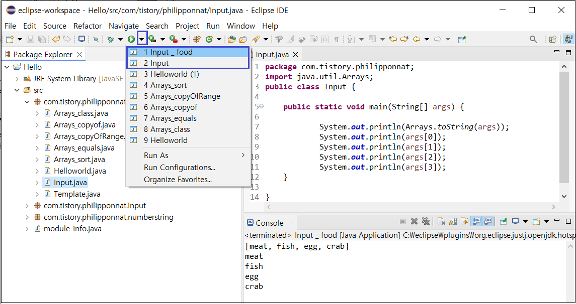 java 띄어쓰기 com.tistory.philipponnat.Input과 같이 경로를 입력하기.