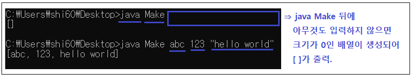 커맨드 라인에 매개변수를 입력하지 않으면 크기가 0인 배열이 생성.