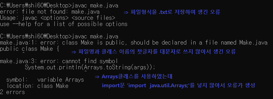 ② CMD창 - javac 파일명.java를 입력하여 컴파일