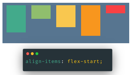 align-items: flex-end; 속성은 교차축의 끝을 시작점으로 하기 때문에,
