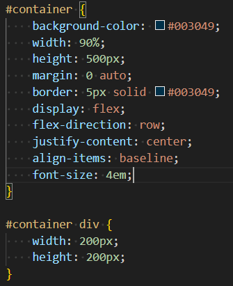 <#container에 align-items:baseline ; 속성을 추가 했을 때 실행결과>