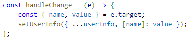 - input 창에 입력 한 정보가 handleChange 함수를 통해서 UserInfo에 저장.
