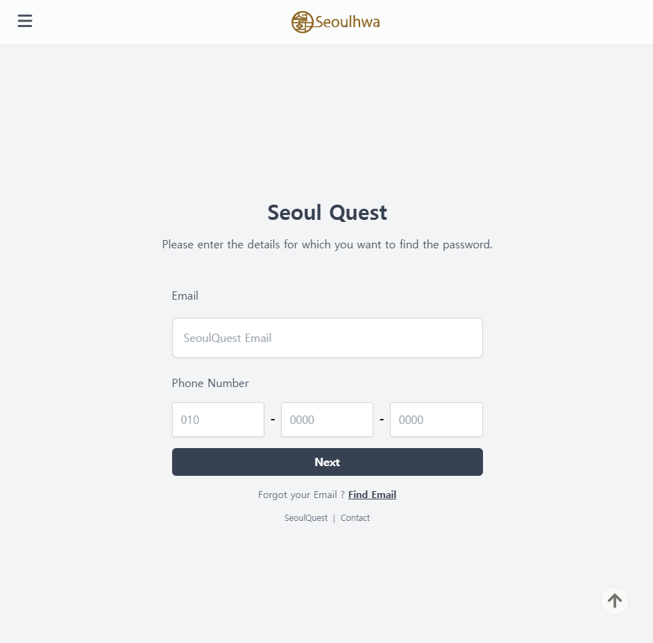 ▪ 사용자가 이메일 및 전화번호를 입력 → findPasswordHandler 호출 → API 요청 전송.