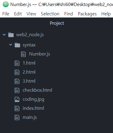 예제폴더 안에 syntax 폴더를 만들고 Number.js 생성.